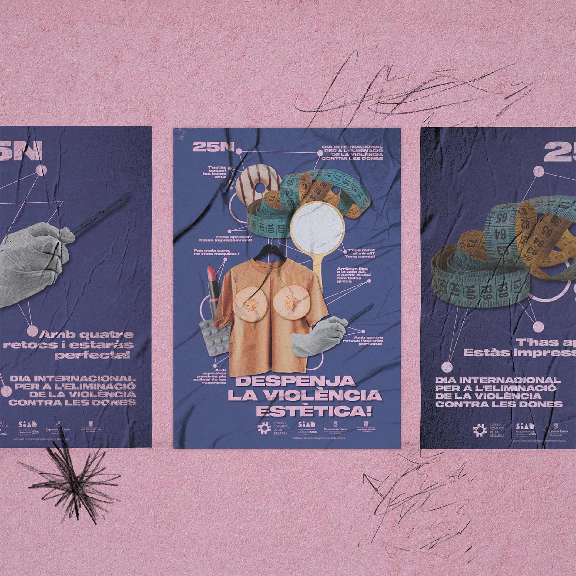 “Despenja la violència estètica” Campanya realitzada conjuntament amb Genera Feminismes per al Consell Comarcal de la Segarra amb motiu del 25N, Dia internacional per a l’eliminació de la violència contra les dones.